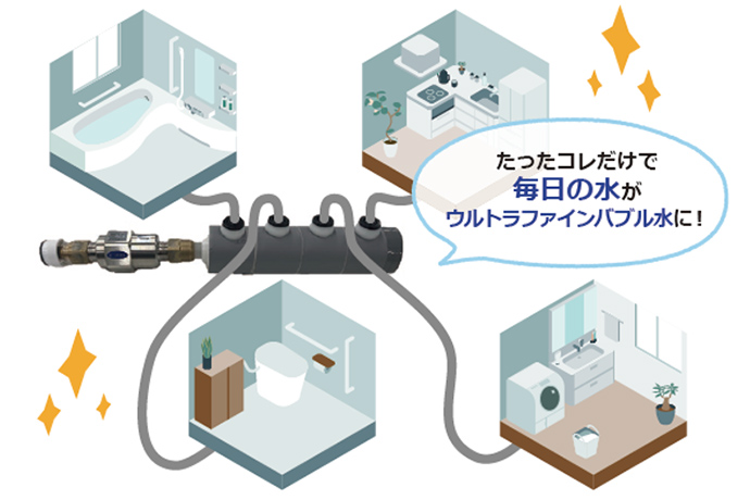 いつもの水がウルトラファインバブル水になることで家事楽住宅を実現できます。